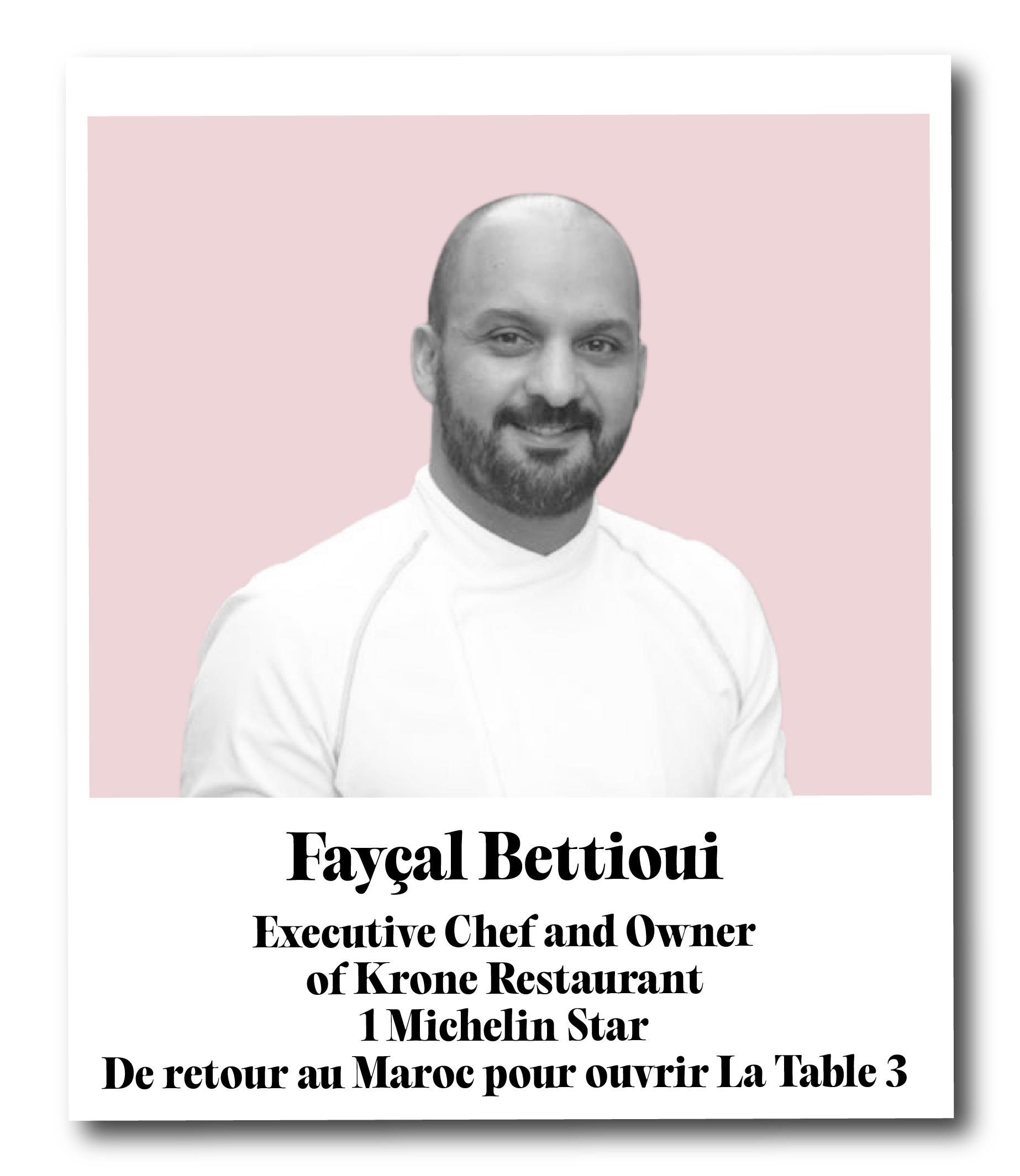 Fayçal Bettioui, originaire de Casablanca, a travaillé dans la restauration gastronomique en Allemagne et aux États-Unis, obtenant ainsi l'étoile Michelin 2019.