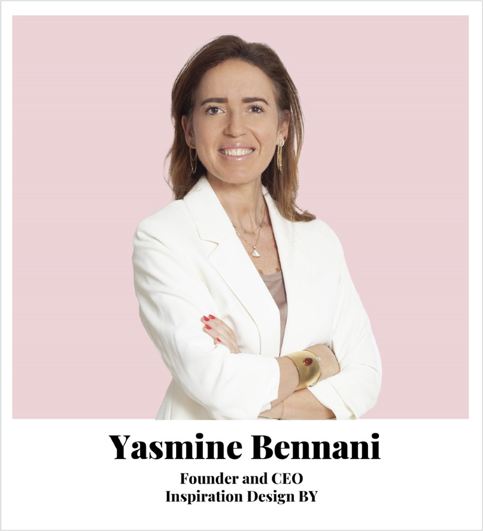 Yasmine Bennani, fondatrice d'Inspiration Design BY, incarne la fusion entre sa passion pour le design d'intérieur et son projet entrepreneurial. Après une carrière de vingt ans dans la finance et le conseil à Paris, New York et Casablanca, elle décide de se consacrer entièrement à sa créativité.